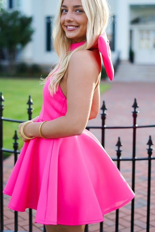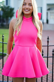 High Neck Backless Satin A-Line Short Homecoming Dress With Bow