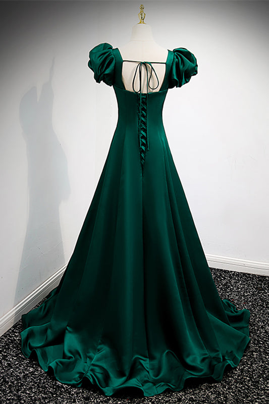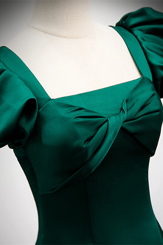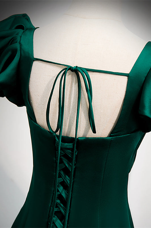 Square Short Sleeves A-Line Satin Party Prom Dress