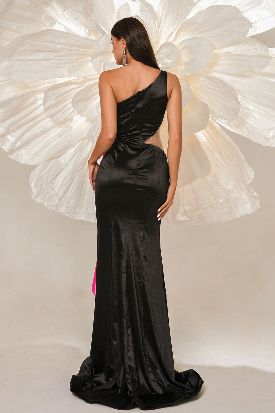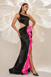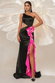 Illusion Empire One Shoulder Satin Ruffled Mermaid Party Evening Dress