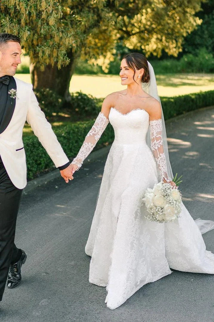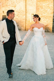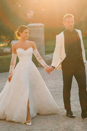Lace A-Line Sweetheart Strapless Long Wedding Dress
