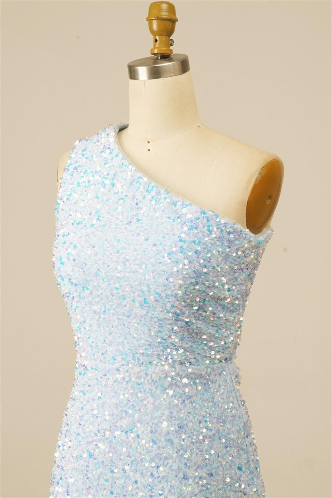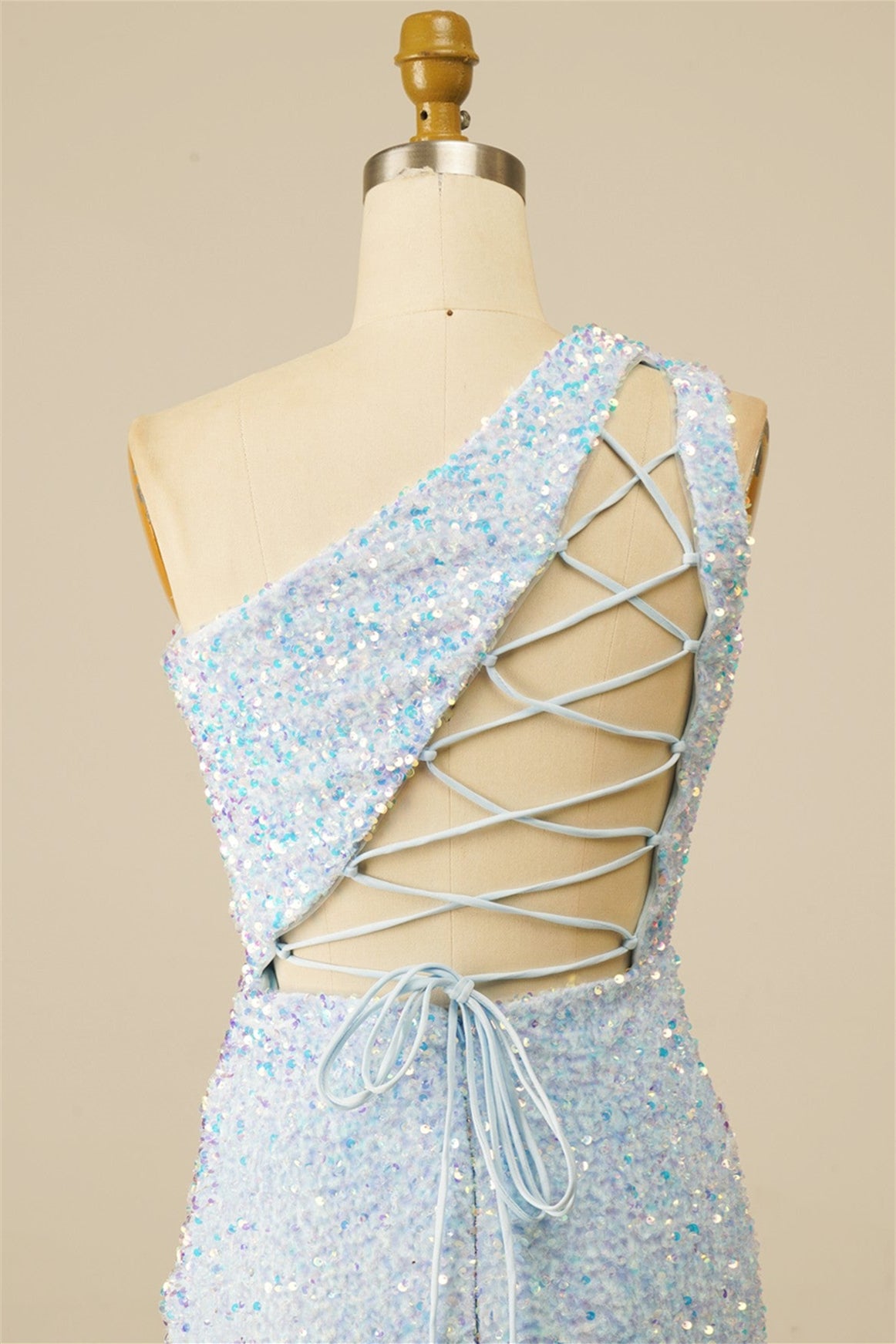Light Blue Sheath Lace-Up One Shoulder Sequins Homecoming Dress