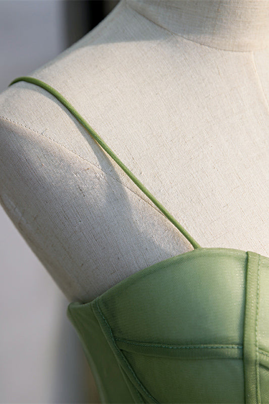 Light Green A-line Straps Ruffle-Layers Sweeping Maxi Formal Dress