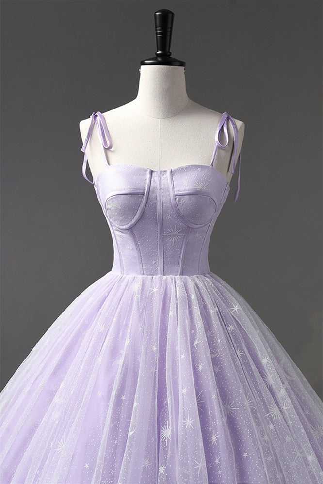Lilac Bow Tie Shoulder Prints Long Prom Dress