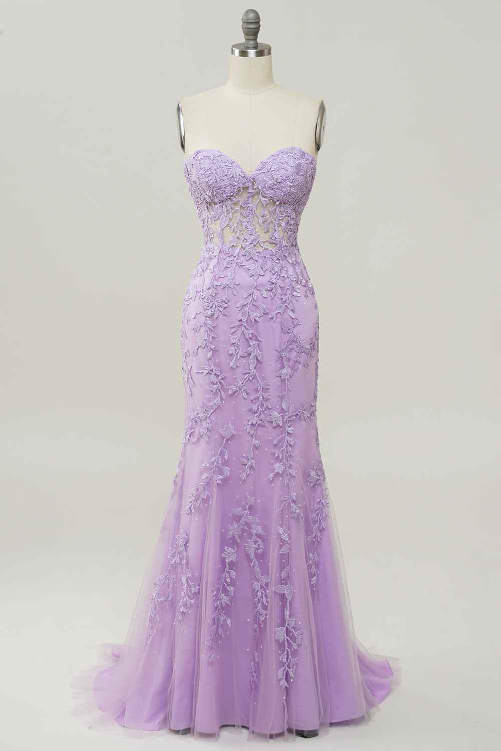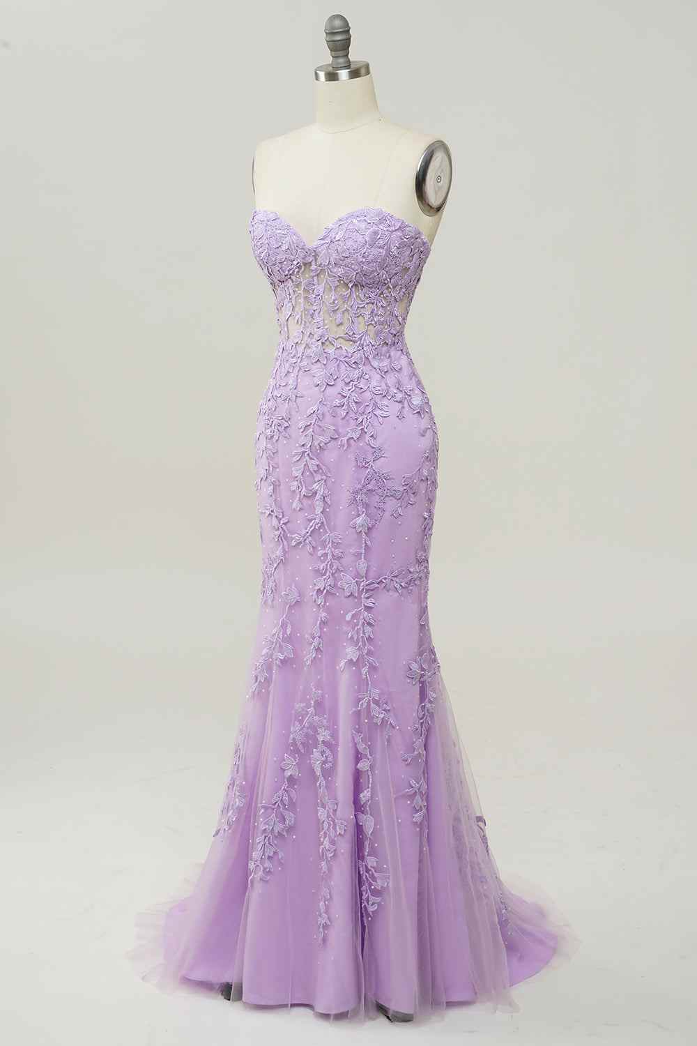 Elevate your formal occasion with this sophisticated mermaid silhouette prom dress. The sweetheart neckline and strapless design create an elegant, timeless look that flatters the figure, while intricate lace detailing adds refined texture and visual interest. The fitted bodice flows into a graceful mermaid skirt that provides dramatic movement and presence on the dance floor. Perfect for prom, galas, or upscale evening events, this dress combines classic design elements with contemporary styling for a memorable entrance.