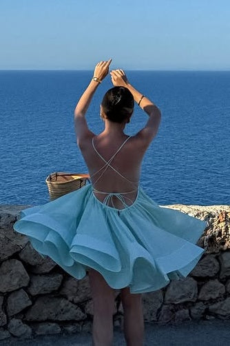Low V-Neck Lace-Up Tulle A-Line Short Homecoming Dress