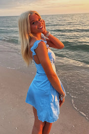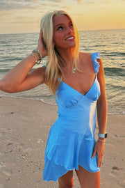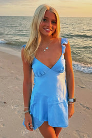Low V-Neck Ruffle Straps Casual Satin Homecoming Dress