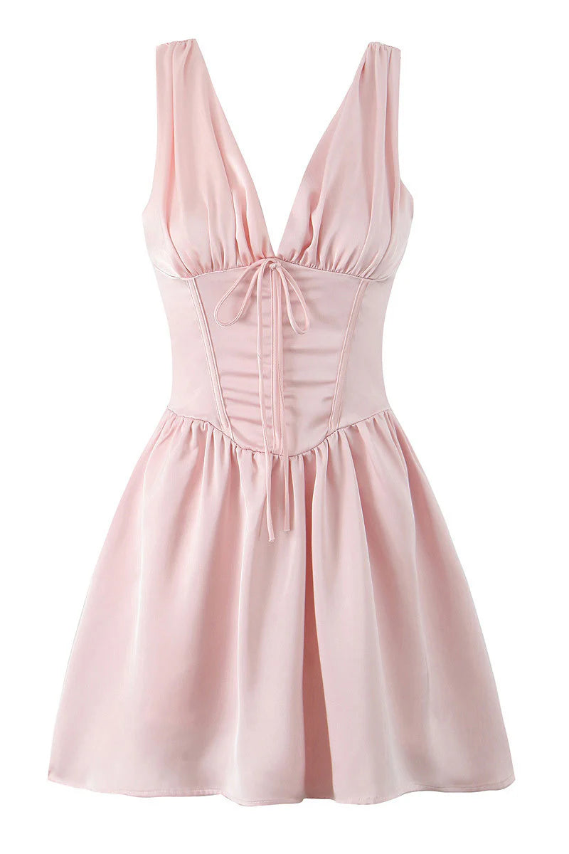 Low V-Neck Sleeveless Satin A-Line Empire Homecoming Dress