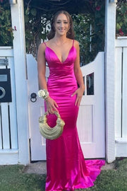 Low V-Neck Spaghetti Straps Open Back Mermaid Party Prom Dress
