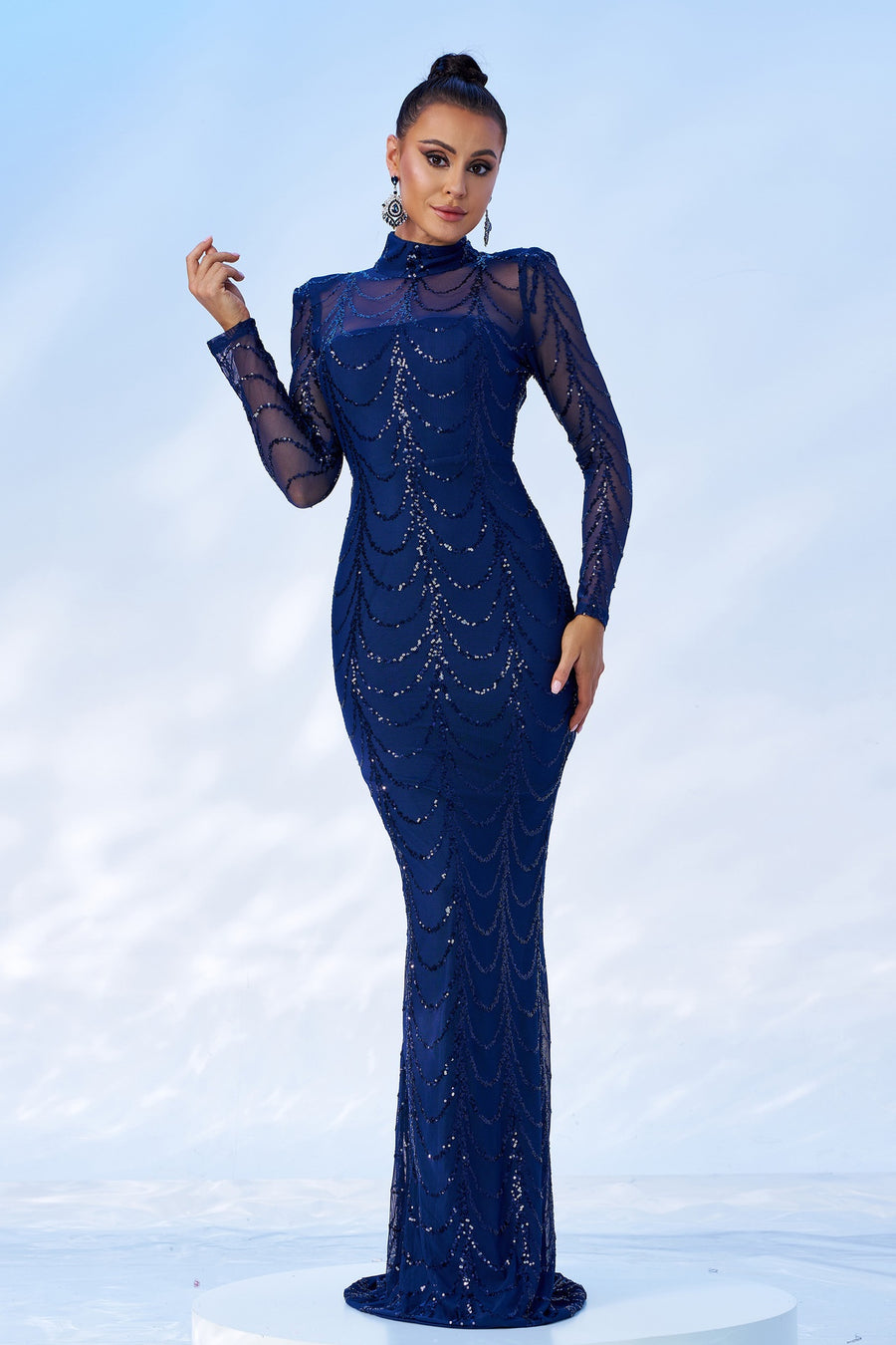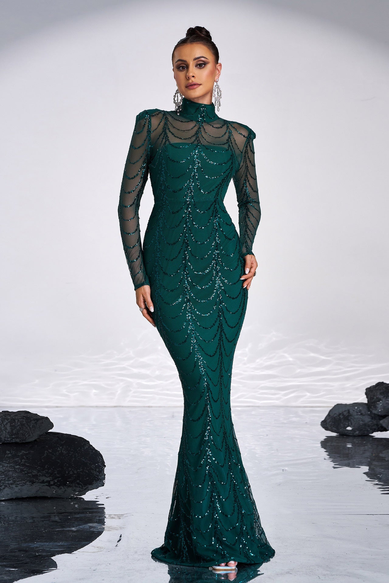 Mermaid High Neck Long Sleeves Empire Party Evening Dress