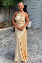 Mermaid Satin High Neck Lace Up Casual Party Evening Dress