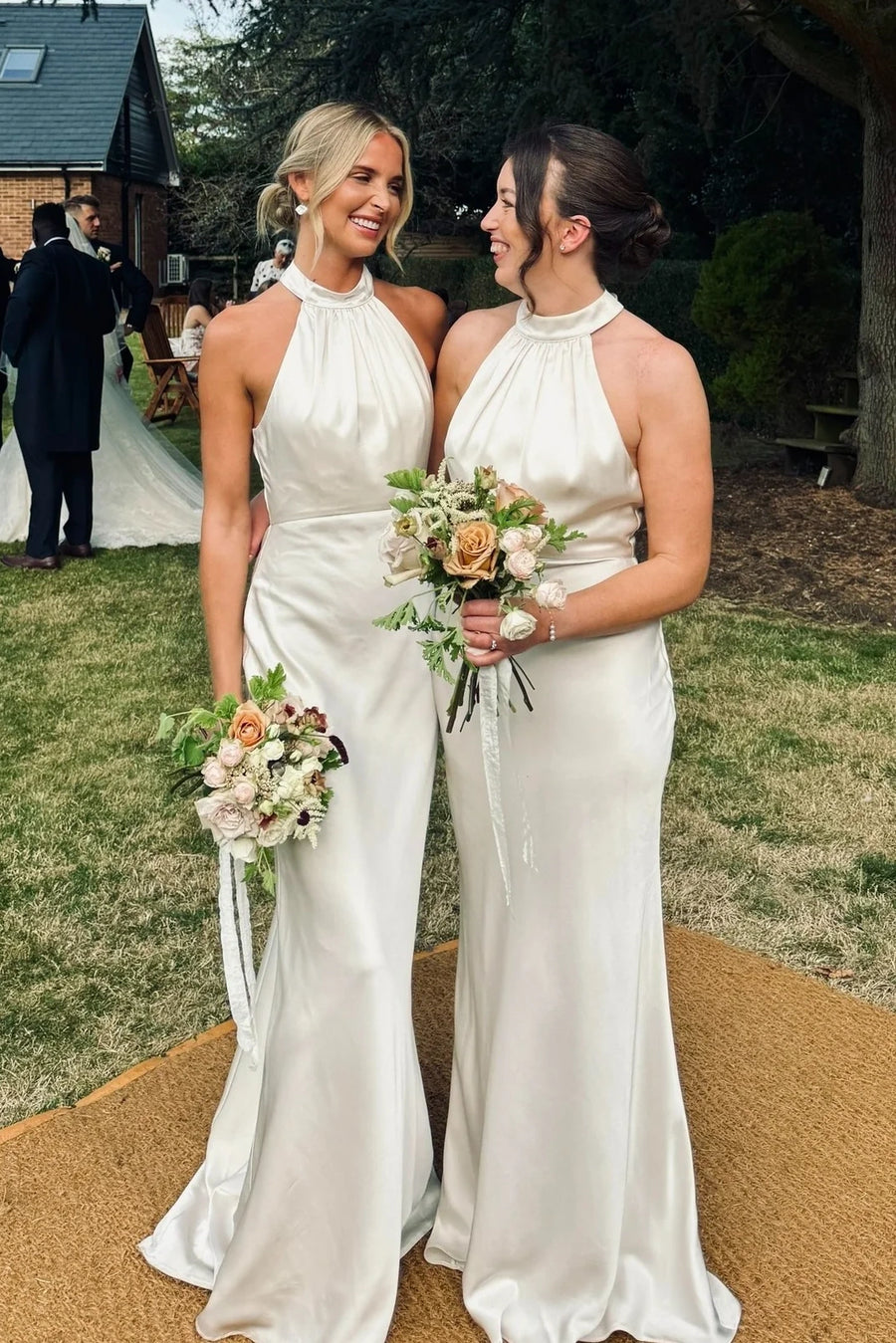 Mermaid Satin High Neck Sleeveless Long Bridesmaid Dress