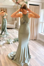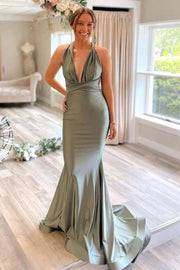 Mermaid Satin Low V-Neck Open Back Bridesmaid Dress