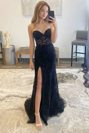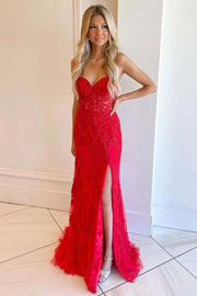 Mermaid Sweetheart Sleeveless Lace Prom Dress With Slit
