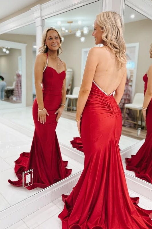 Mermaid V-Neck Halter Backless Long Party Prom Dress