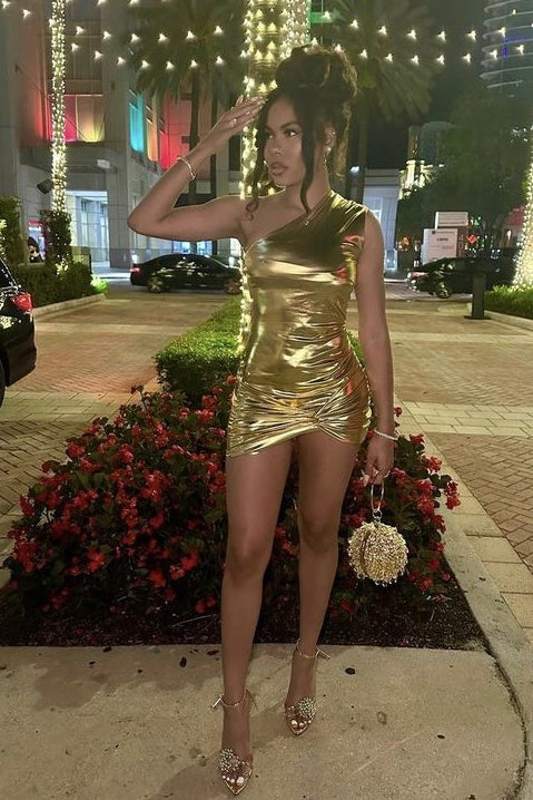 Modest One Shouldet Sleeveless Fitted Mini Homecoming Party Dress