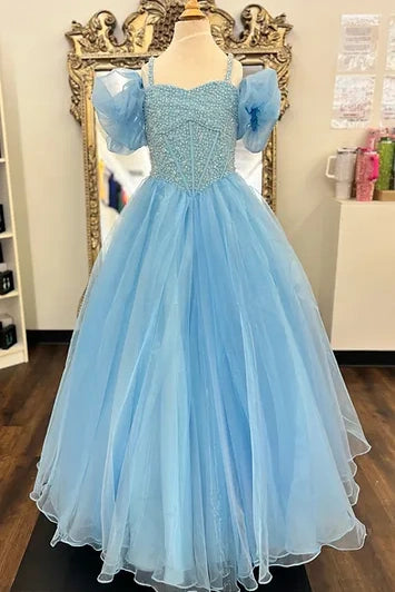 Off-Shoulder Empire Pearls Tulle A-Line Girl Pageant Dress