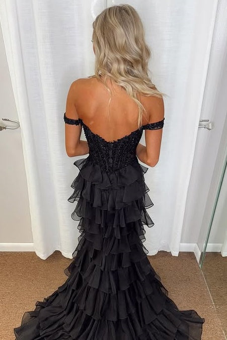 Off-Shoulder Empire Two Tone Tiered Train Prom Dress
