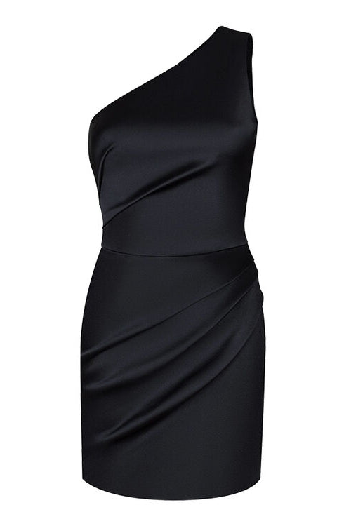 Joyofdress this sheath silhouette mini dress features a one-shoulder neckline.