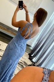 One Shoulder Sleeveless Lace Appliques Party Prom Dress