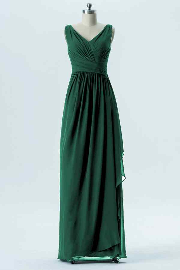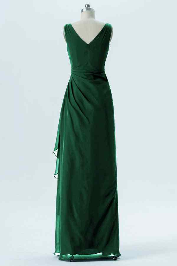 Peacock Green A-line Chiffon Pleated Ruffle Long Bridesmaid Dress