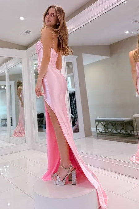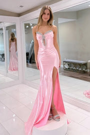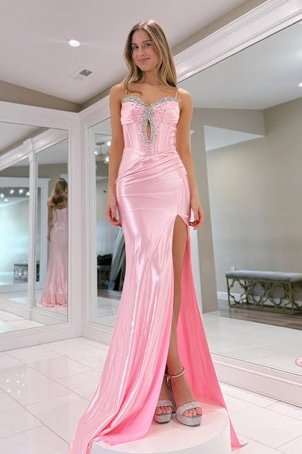 Pink Spaghetti Straps Beaded Empire Mermaid Party Prom Dress