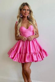Pink Sweetheart Bow Strap A-Line Homecoming Dress