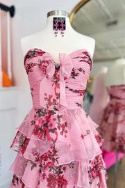 Pink Sweetheart Sleeveless Tiered A-Line Short Homecoming Dress