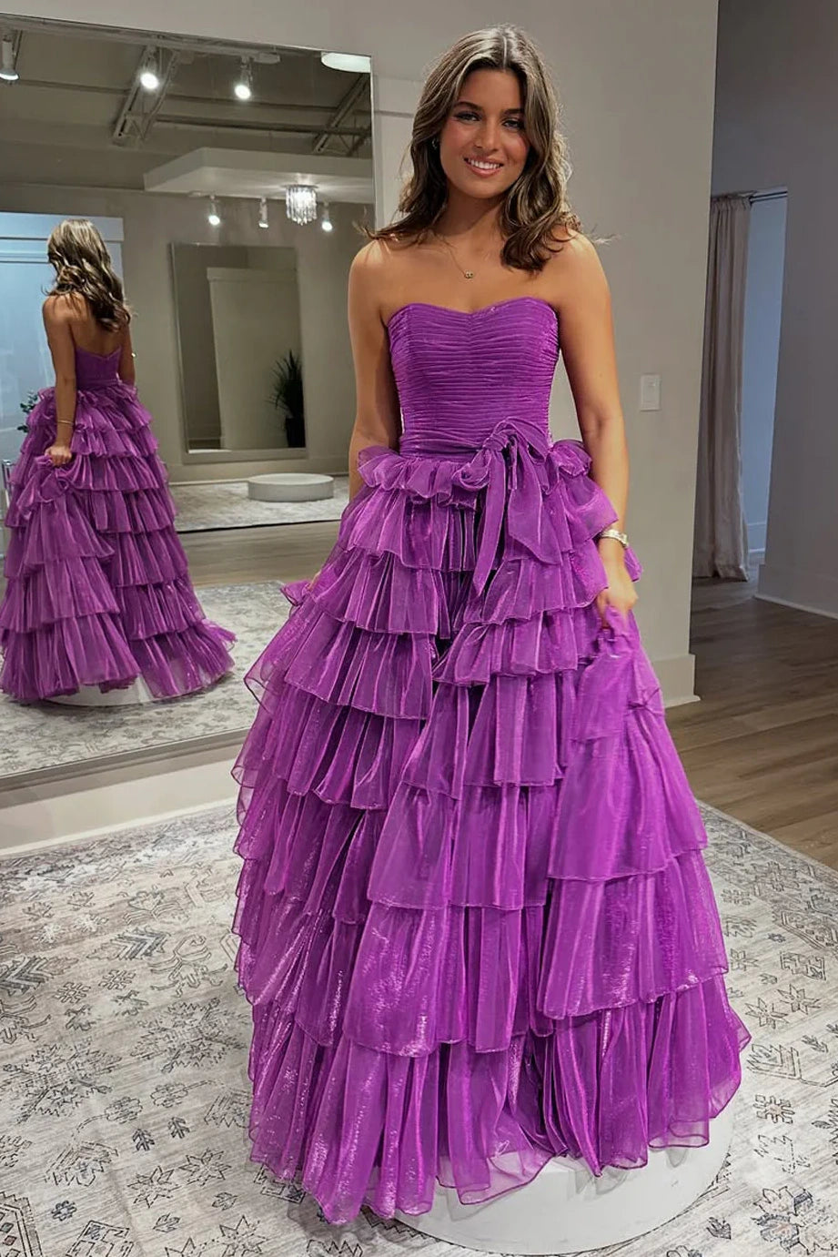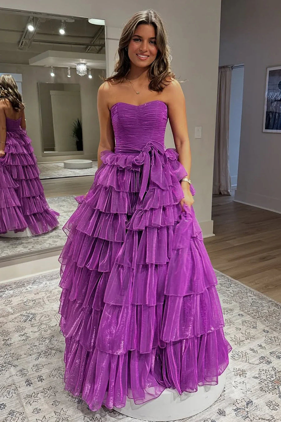 Pleated Empire Strapless A-Line Tiered Party Prom Dress
