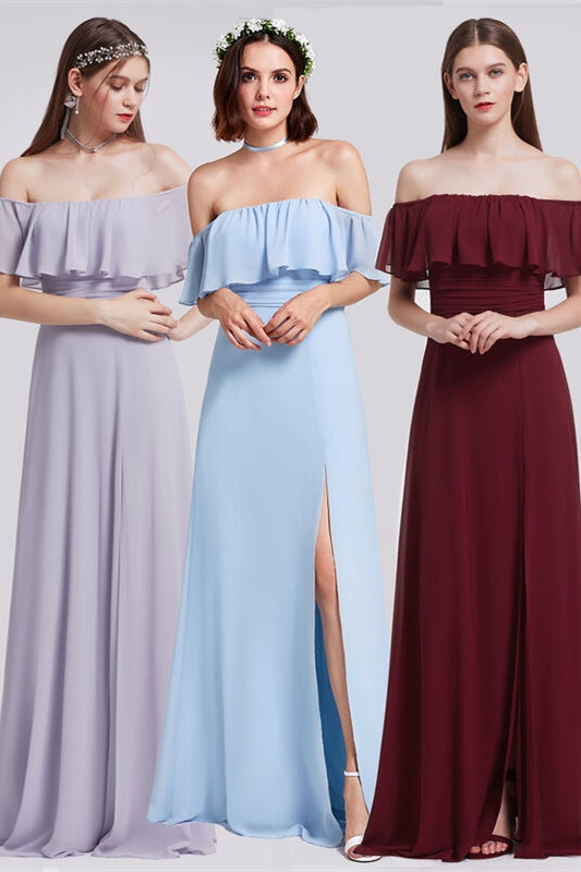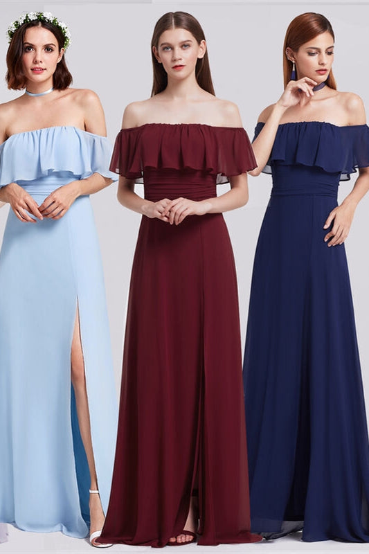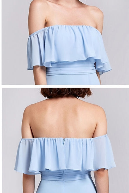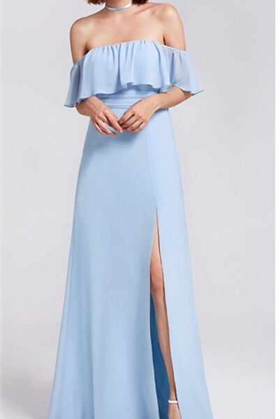Princess Off the Shoulder Blue Bridesmaid Dress