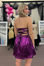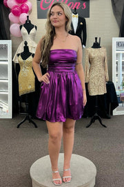 Purple Satin A-Line Strapless Lace Up Homecoming Dress