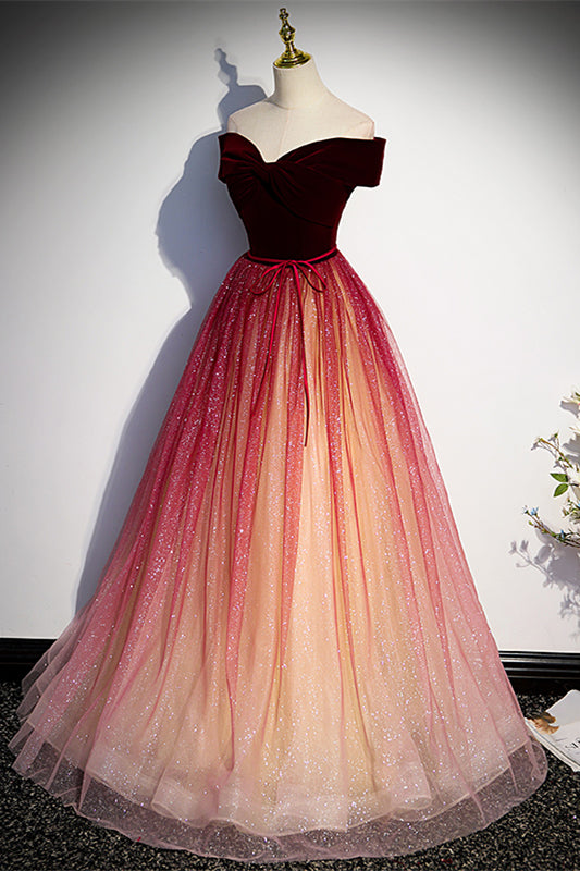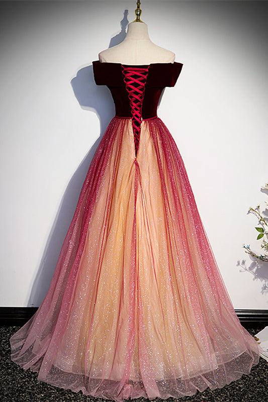 A-Line Velvet Off-Shoulder Empire Sparkly Tulle Prom Dress