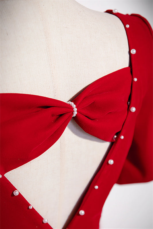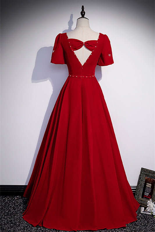 Square Empire Short Sleeves A-Line Satin Long Party Prom Dress