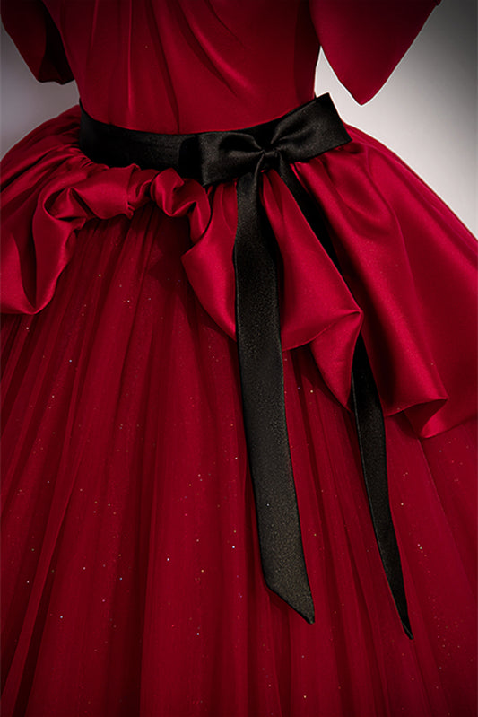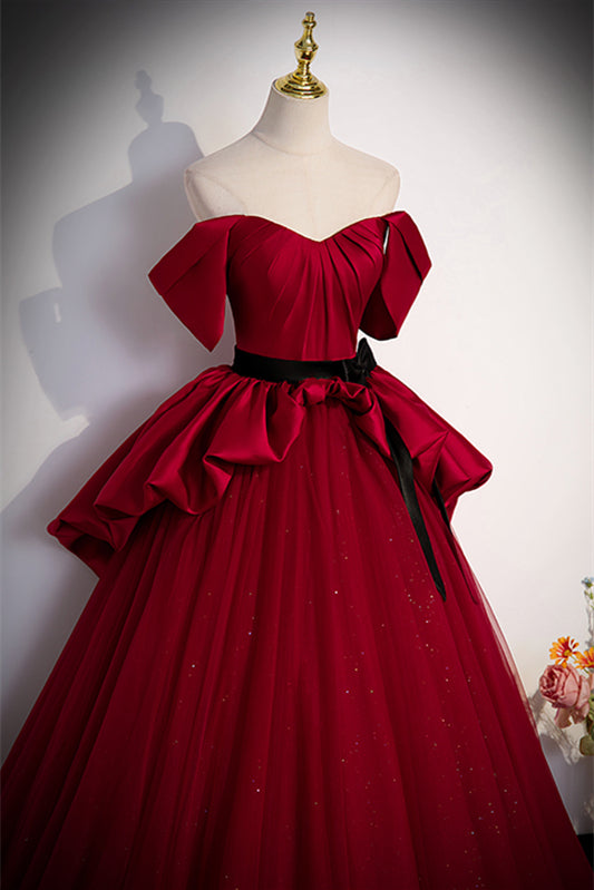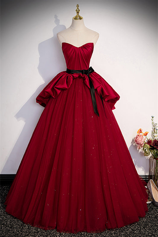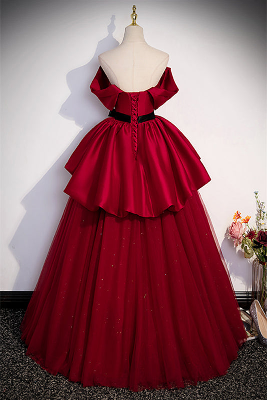 Red Strapless Multi-Layers Detachable Off-the-Shoulder Long Dress with Sash
