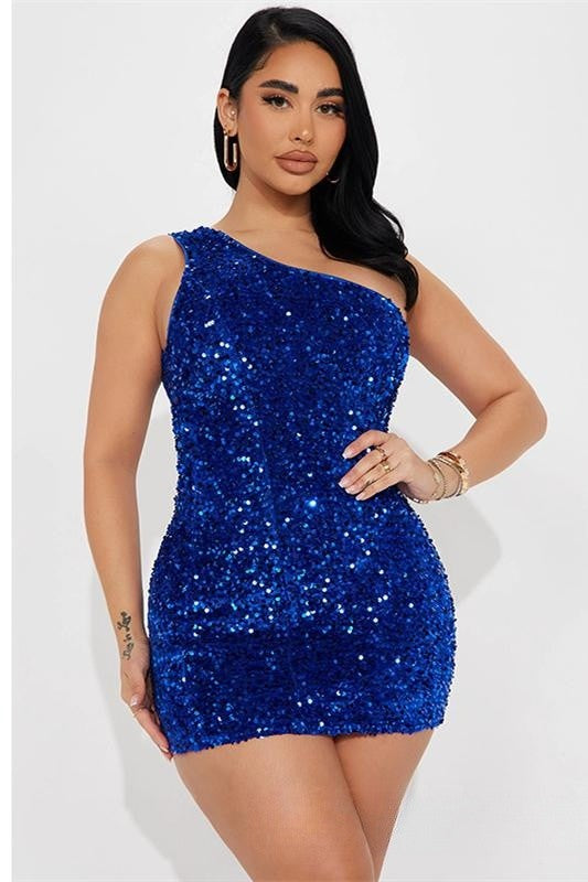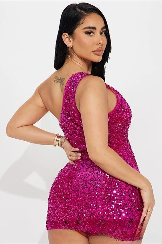 Rose Pink One Shoulder Sequins Sheath Homecoming Dress
