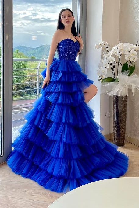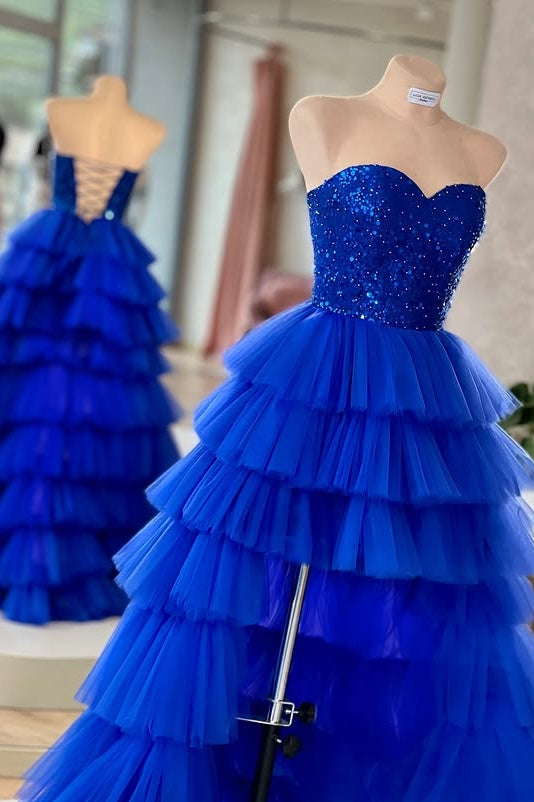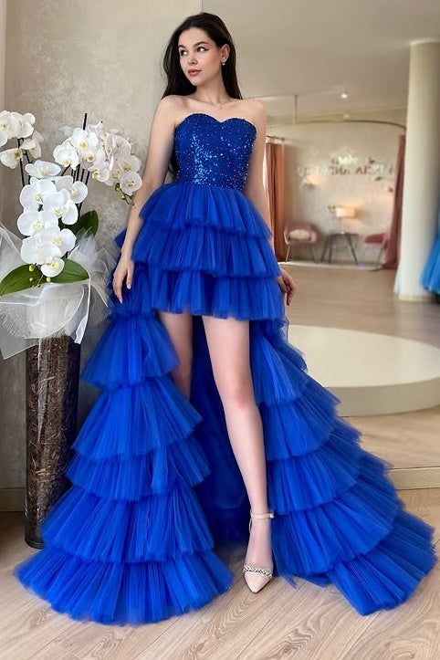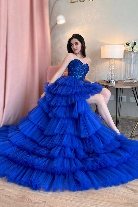 Royal Blue Sweetheart Empire High Low Tiered Party Prom Dress