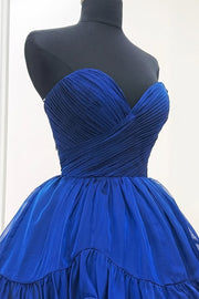 Royal Blue Sweetheart Strapless Pleated Empire Homecoming Dress