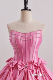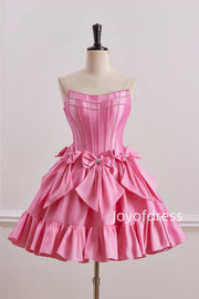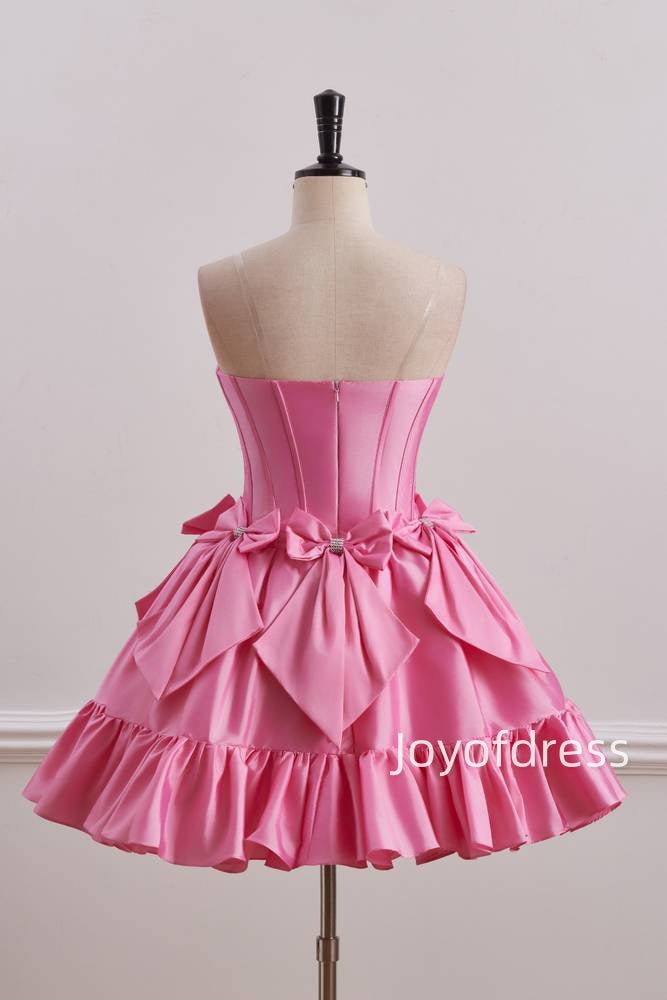 Satin A-Line Empire Beaded Strapless Homecoming Dress With Bow
