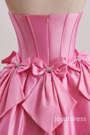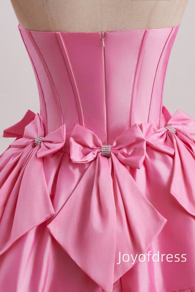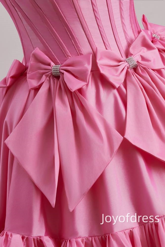 This satin A-line empire homecoming dress features a strapless neckline and delicate beading that adds subtle sparkle. The empire waist enhances your figure while providing a comfortable fit, and the elegant bow detail adds a refined, feminine touch. Its flowing A-line silhouette offers graceful movement, making it an excellent choice for a memorable homecoming look.