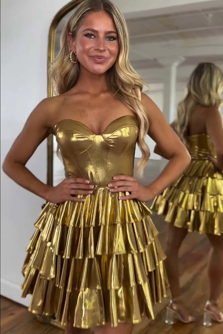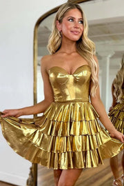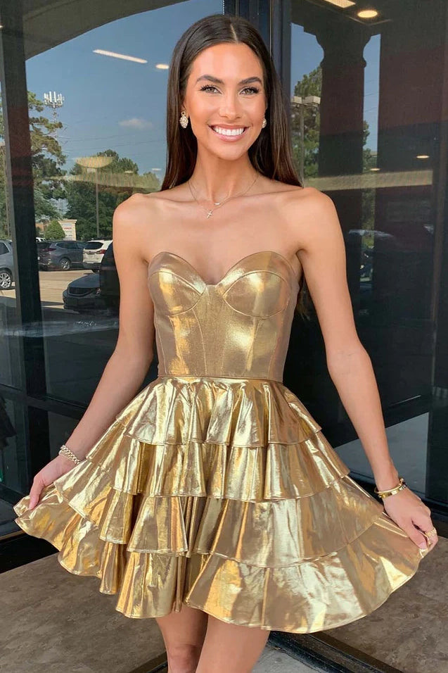 Satin A-Line Empire Strapless Tiered Short Homecoming Dress