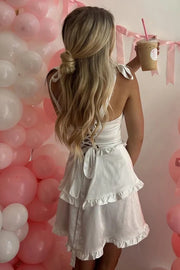 Satin A-Line Empire Straps Ruffle Homecoming Dress