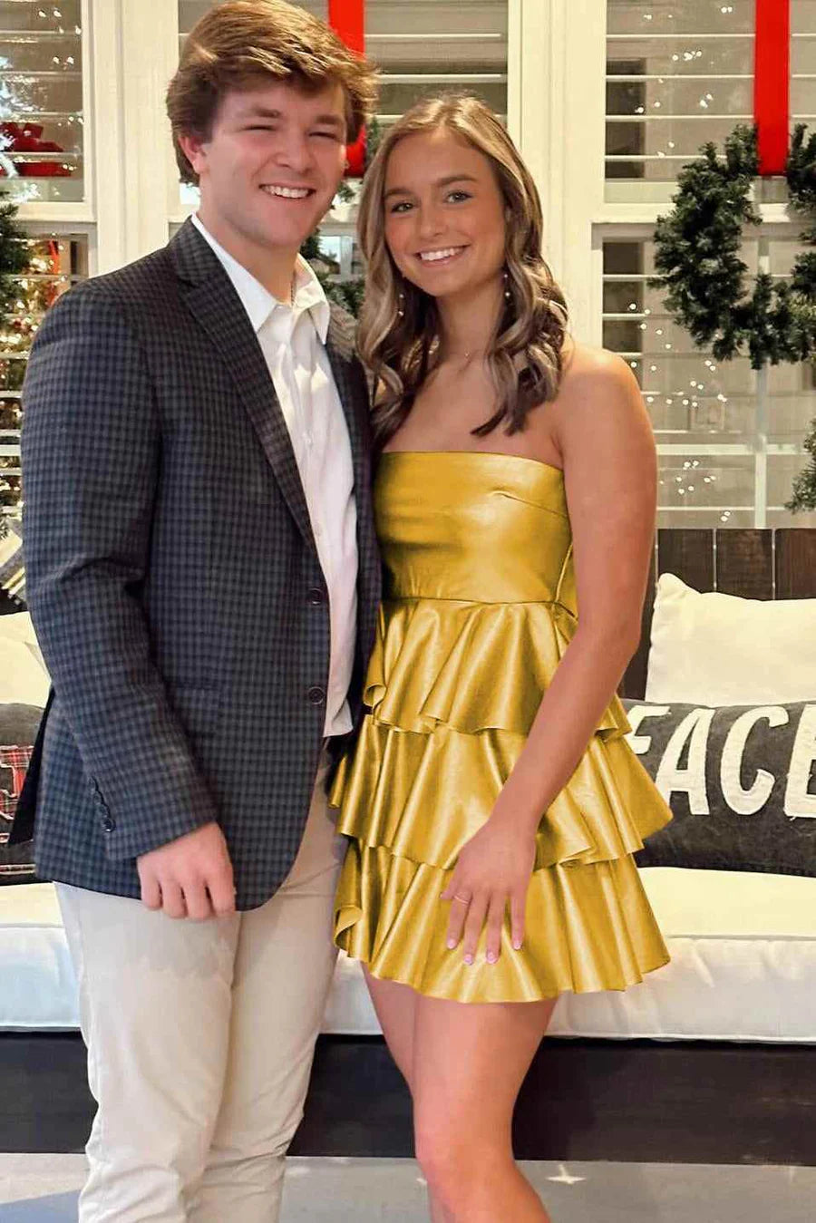 Satin A-Line Strapless Tiered Short Party Homecoming Dress