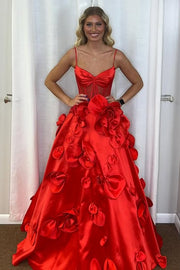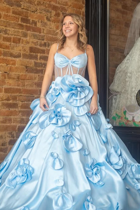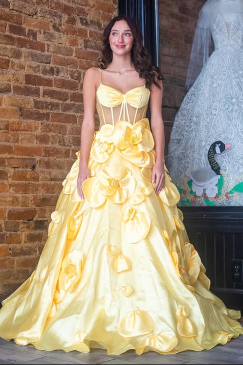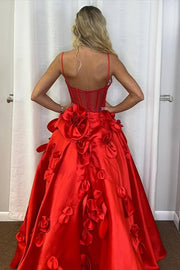 Sheer Empire Sleeveless Satin A-Line Floral Prom Dress