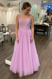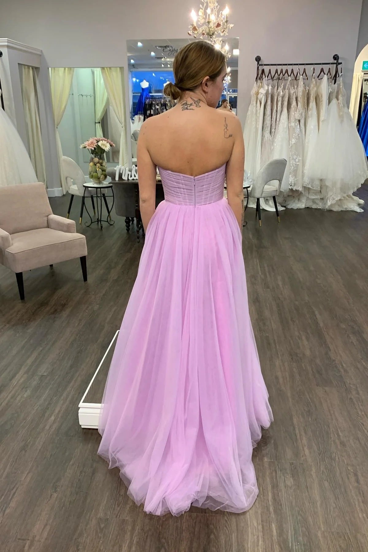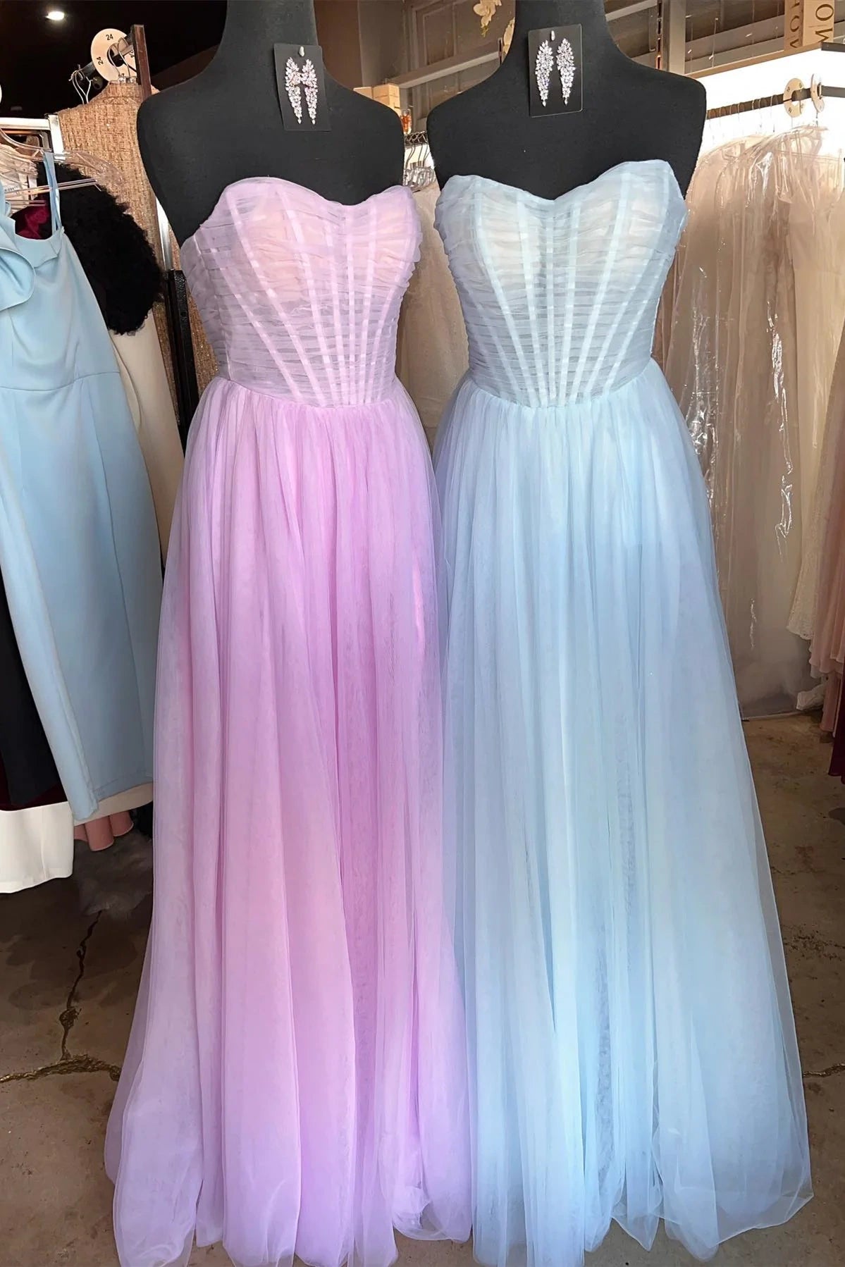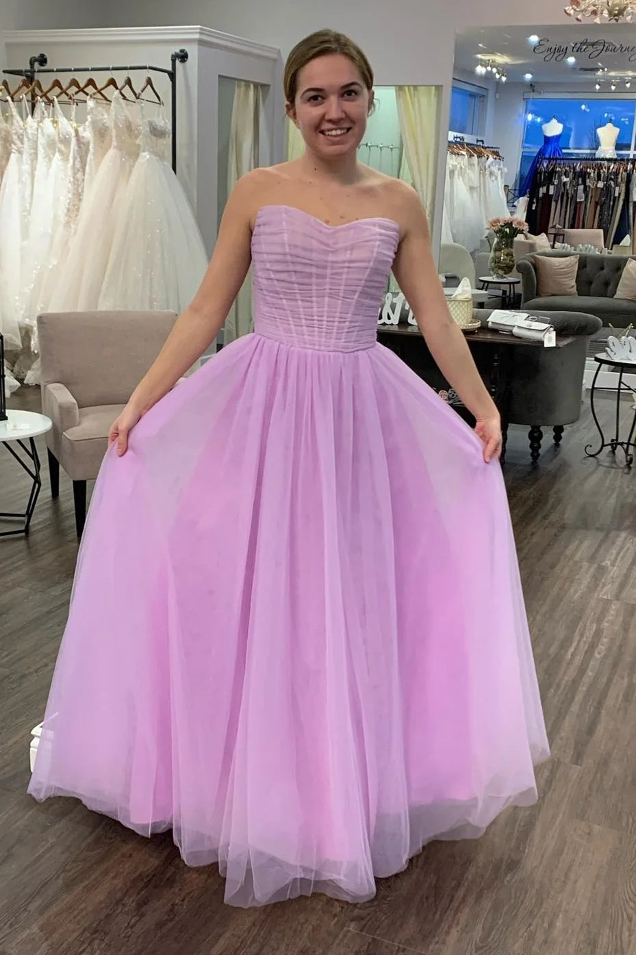 Sheer Empire Sweetheart Strapless Tulle A-Line Party Prom Dress