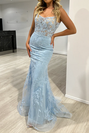 This Sky Blue Sleeveless Lace Up Appliques Party Prom Dress is perfect for any special occasion. Made with stunning lace appliques, it offers an elegant and sophisticated look. The sleeveless design allows for easy movement, while the lace-up back ensures...