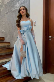 Sky Blue Sweetheart Strapless Empire Ruffled Party Prom Dress