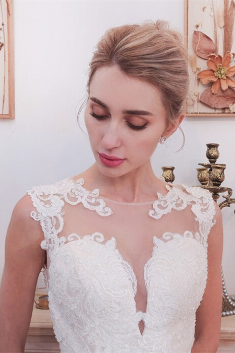 Sleeveless Mermaid White Lace Long Wedding Dress