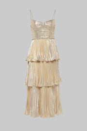 This elegant A-line dress features spaghetti straps and a high empire waist, creating a flattering and timeless silhouette. Made with pleated and tiered detailing, this dress will give you a sophisticated and feminine look. Perfect for any party or prom...