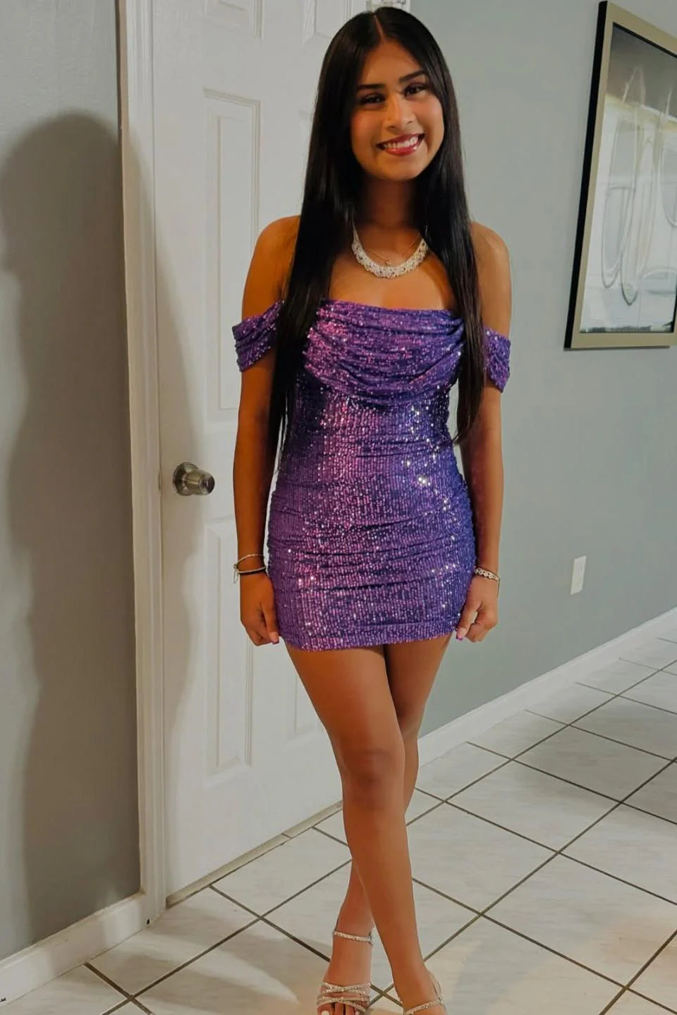Sparkly Bateau Off-Shoulder Bodycon Homecoming Dress