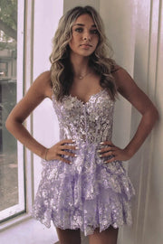 Sparkly Lace A-Line Sweetheart Sleeveless Tiered Homecoming Dress