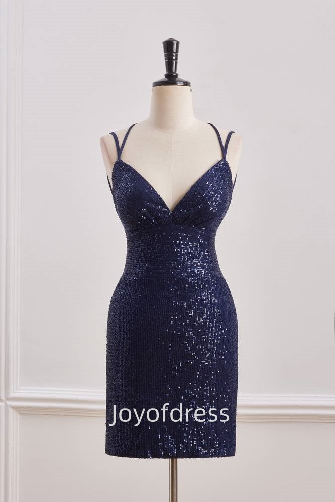 This Sparkly Sequins V-Neck Sleeveless Fitted Homecoming Dress features a shimmering sequin finish that catches the light beautifully. Its fitted silhouette contours the body for a sleek, elegant look, while the V-neckline and sleeveless design enhance sophistication and comfort. Ideal for making a dazzling statement, this dress combines glamour with a flattering fit perfect for homecoming events.